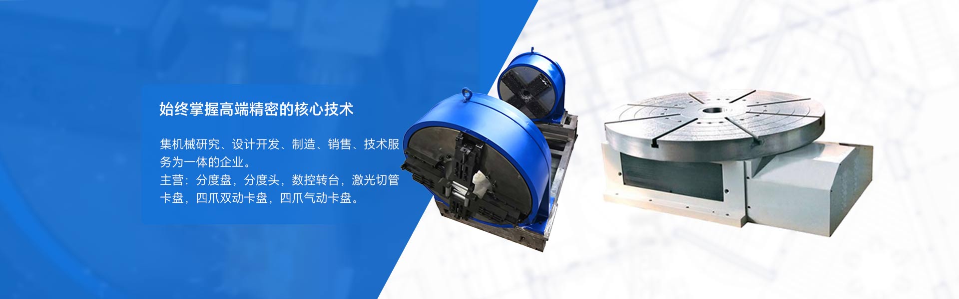 MANUFACTURE 主營(yíng)分度盤,分度頭,數(shù)控轉(zhuǎn)臺(tái),激光切管卡盤,四爪雙動(dòng)卡盤,四爪氣動(dòng)卡盤等